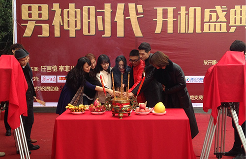 監(jiān)制、導(dǎo)演和主創(chuàng)演員一同進(jìn)行莊嚴(yán)的開機(jī)拜神典禮