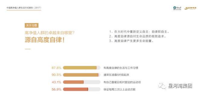 這份報(bào)告有多重磅?它是國內(nèi)首次針對高凈值人群的生活方式專業(yè)科研報(bào)告,是暨南大學(xué)生活方式研究院首次產(chǎn)學(xué)研結(jié)合的科研成果,也是星河灣生活學(xué)院首次深入?yún)⑴c、聯(lián)合發(fā)布的學(xué)術(shù)研究報(bào)告。
