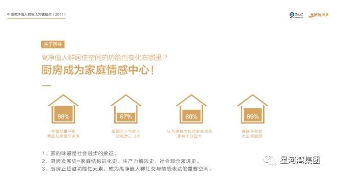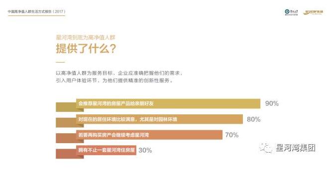 《報(bào)告》的細(xì)節(jié)化解碼令人印象深刻。一直以來,諸多企業(yè)和機(jī)構(gòu)意圖解碼高凈值人群,但難以管窺高端人群的生活形態(tài),只有長期身處其中,才能接近真相而星河灣自成立起始終服務(wù)于高凈值人群,高達(dá)75%的業(yè)主屬于該群體。正因如此,星河灣堪稱研究國內(nèi)高凈值人群居住的典型樣本。